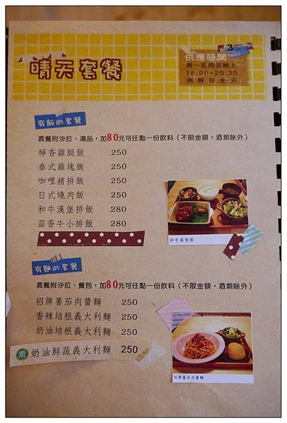 晴天套餐則是周一~週五晚上及例假日全天提供~飯類麵類都有