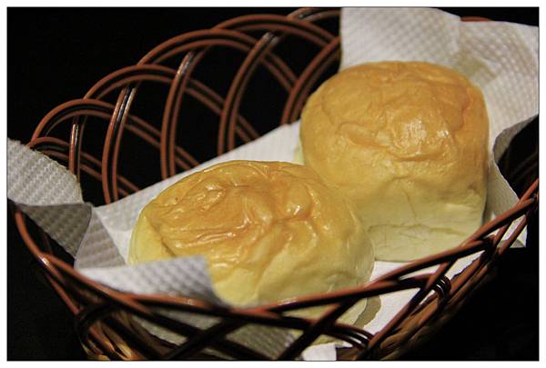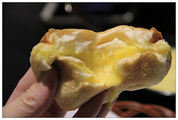 烤的熱呼呼的爆漿餐包輕輕撕開就可以看到流洩而下的金黃奶油~呼!超正點的!