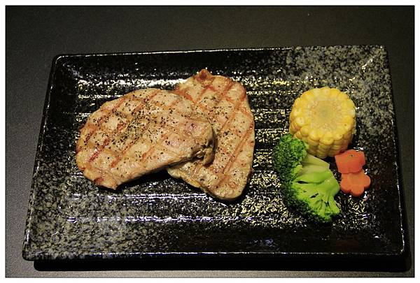 印象中不管去哪裡吃類似這種豬排~因為一定要烤熟~所以多少都會有一些柴柴的口感~