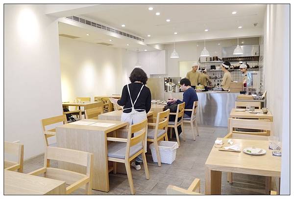 用餐環境是白色牆面搭配淺色調的木質桌椅~