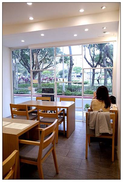 餐廳是整面的落地玻璃窗搭配白色框框~