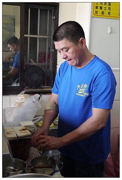 老闆超厲害~~不停的"徒手"翻烤土司~我想說這是在練鐵沙掌就對了XDD