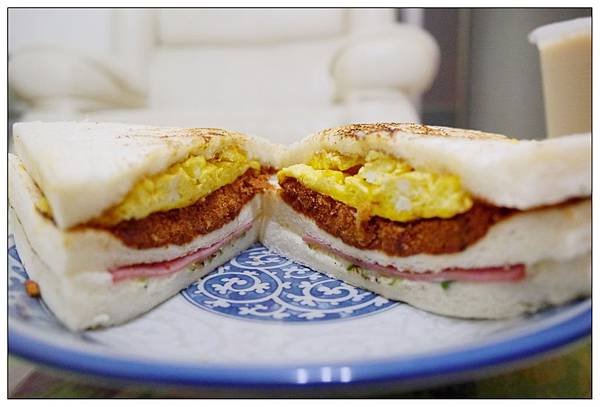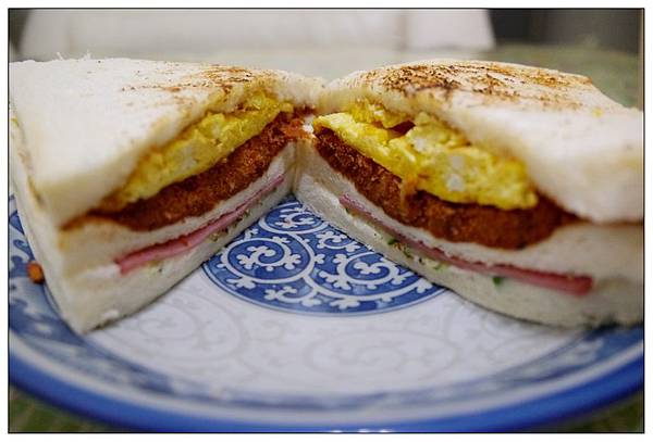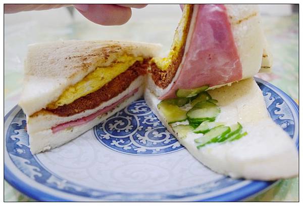 肉鬆三明治裡面的配料是最多的~有肉鬆、火腿、黃瓜和蛋