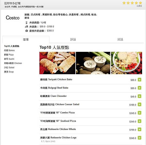 在他們家的網站亂逛發現居然連Costco好市多的熟食也可以上網訂購外送耶!!!