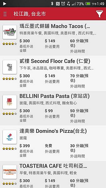 輸入所在位置之後出現的就是在外送範圍內的所有餐廳~~