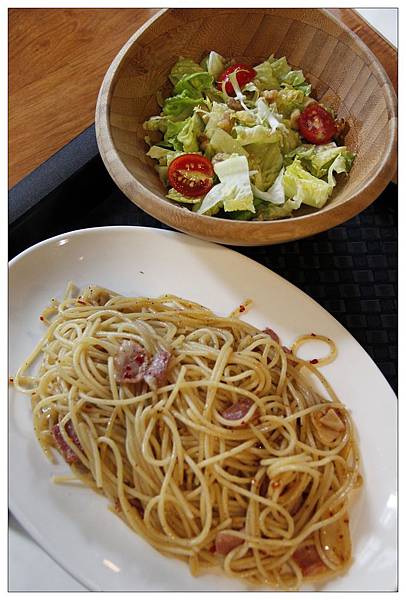 義大利麵做成微辣的口感還不錯~可惜有一點點油