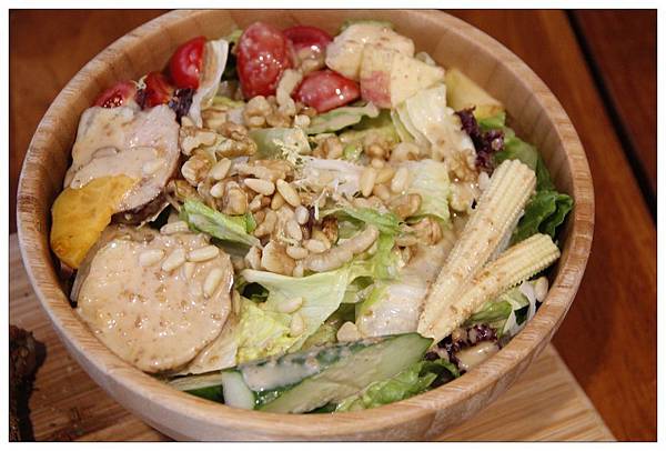 還好這用木盆裝成的超豐盛沙拉稍微扳回了一城!!!
