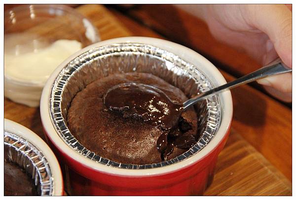 輕輕從中間劃開之後~~讓人看了都甜蜜蜜的巧克力漿就這樣大方地流出來~