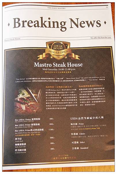 他們家的MENU跟米朗琪一樣是做成像報紙的設計