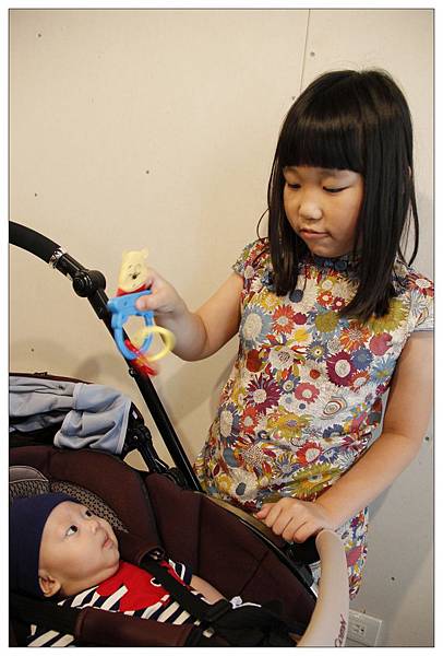 還好現在超愛小球的蔡小妹立刻就跑來逗小球玩~讓嬸嬸可以專心拍照