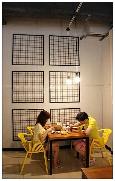 利用簡單的置物架巧妙的隔開前後方用餐區~既具美觀又有穿透感
