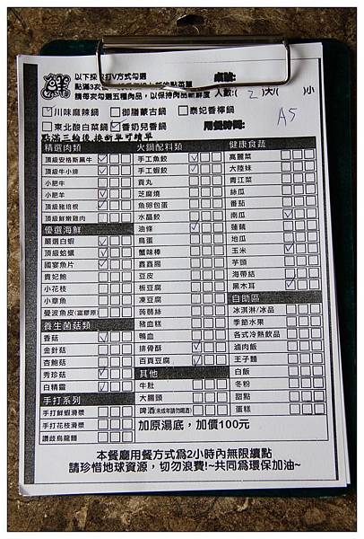 這裡的點餐方式是用桌上的點餐單來勾選~