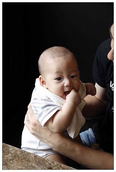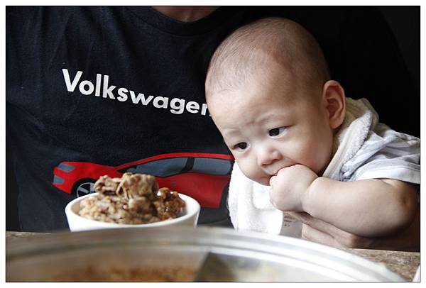 最後就以這張貪吃鬼蔡小球邊盯著爸爸手中的肉邊吃拳頭的照片最為結尾吧!