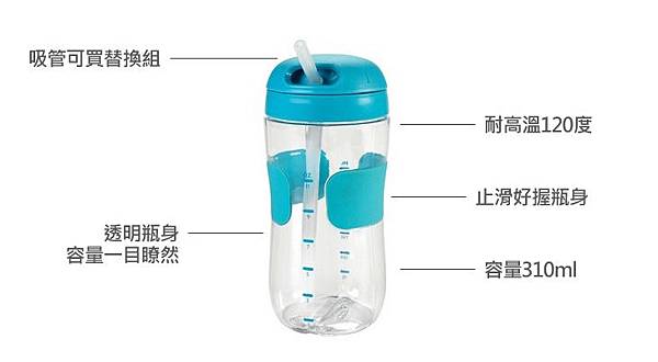 瓶身上的止滑設計真的很不錯~~原本擔心小球已經拿習慣有手把的小水壺