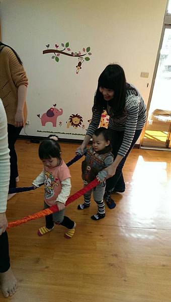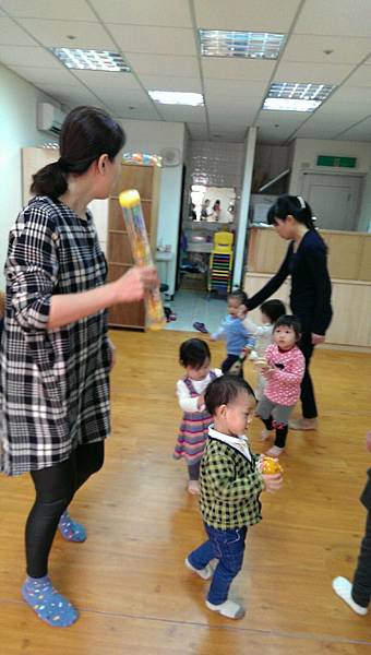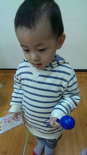 拿了之後很開心的跟在老師後面敲敲打打的超可愛