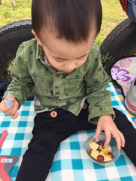現在吃水果都要媽媽幫他插上可愛的小叉子才願意自己吃