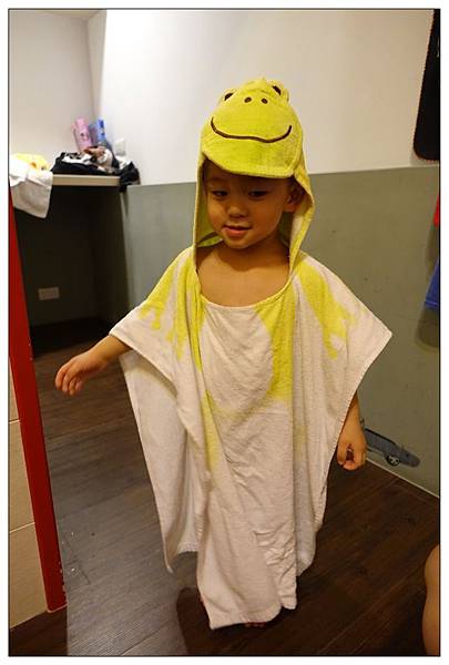 今天的民宿有提供寶寶浴巾~小傢伙穿起來超級可愛啊!!!
