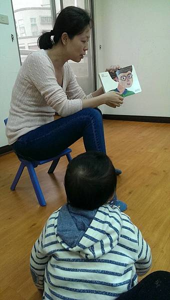 講沒幾句小傢伙就安靜下來不哭很專心的聽~