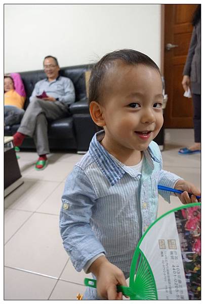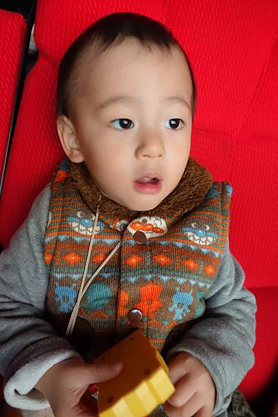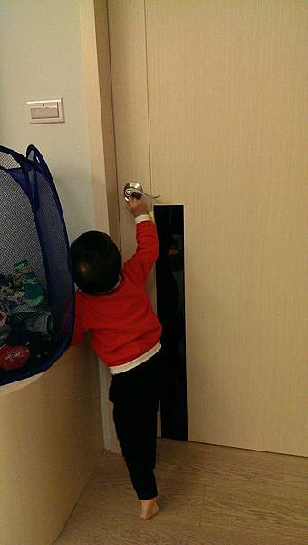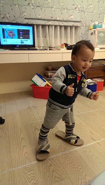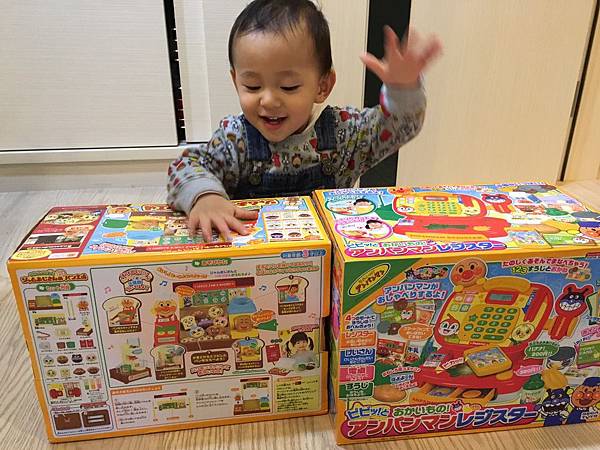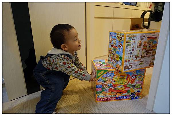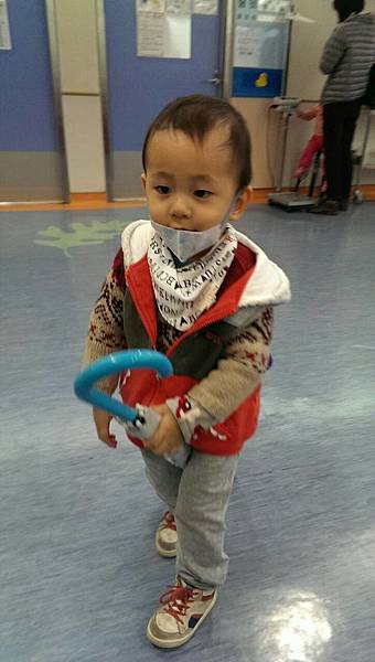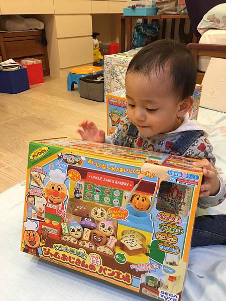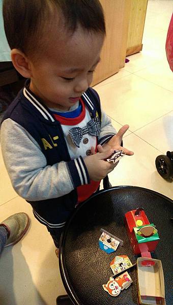 這小子今天在家要出門前要鬧脾氣~~因為怎樣都不肯收他的麵包超人車子