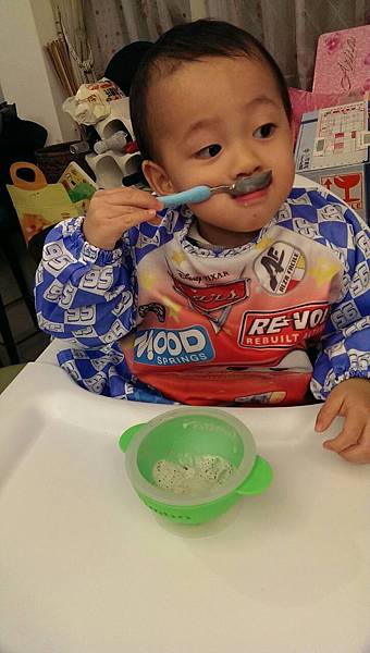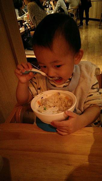 小傢伙一坐定就光速吃完一碗香鬆飯~看到第二碗上桌還立刻吵著要吃