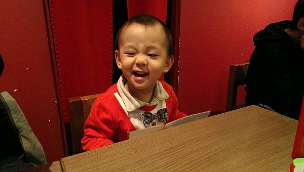 吃飯的時候一直歡~哭到外婆受不了帶他去關廁所XDDD