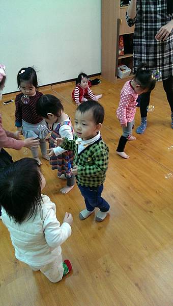 玩泡泡的時候會觀察其他小朋友的舉動~反而不太自己去追泡泡