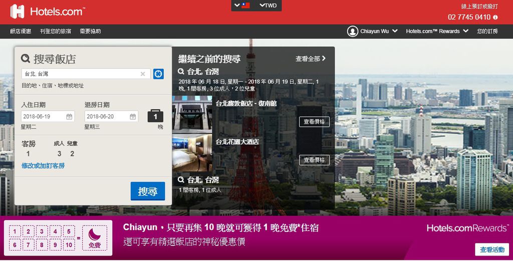 小菲這次是在Hotels.com上訂一泊一食的方案