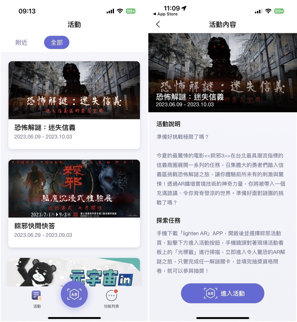開啟LightenAR選擇第一個恐怖解謎:迷失信義之後看完遊戲說明之後