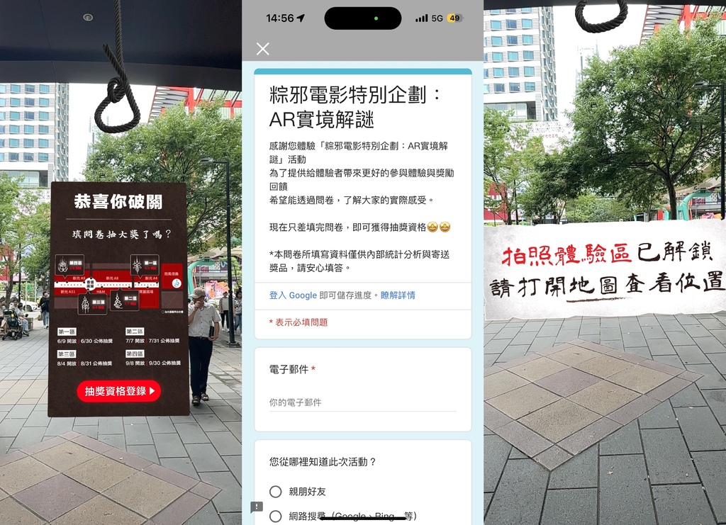 近期走在信義區香堤大道上應該有不少人發現因應這部電影而推出的AR解謎遊戲
