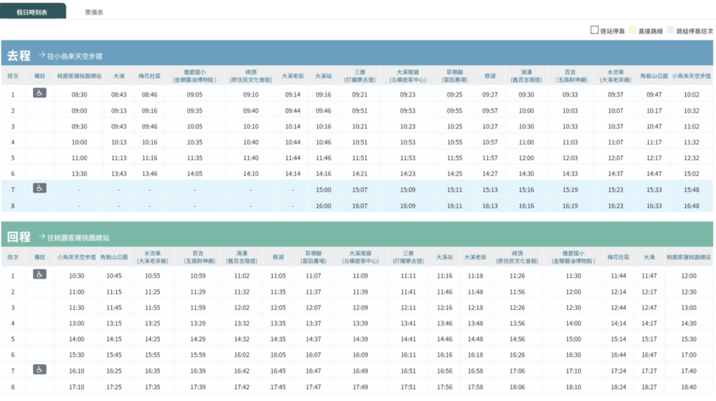 底下這張為官網所提供的詳細時刻表.除了起點和終點站之外