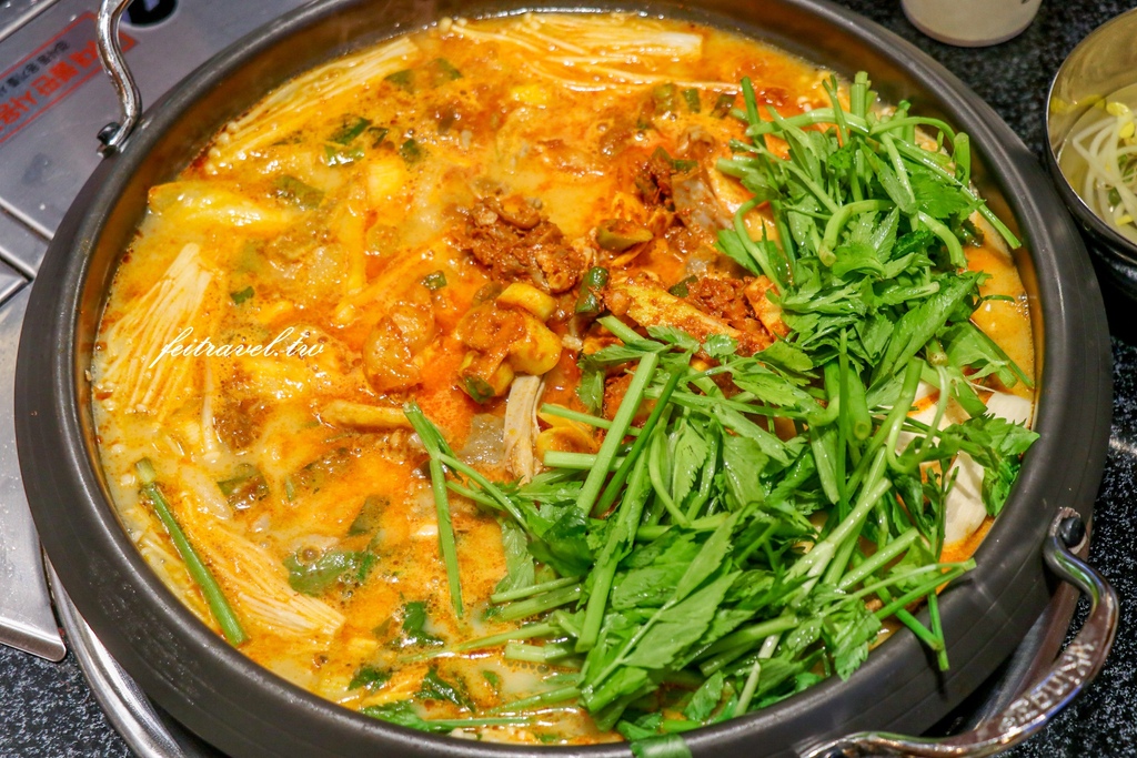 韓式火鍋基本上都是兩人份起跳,一個人來吃的話也可以點豬肉湯飯
