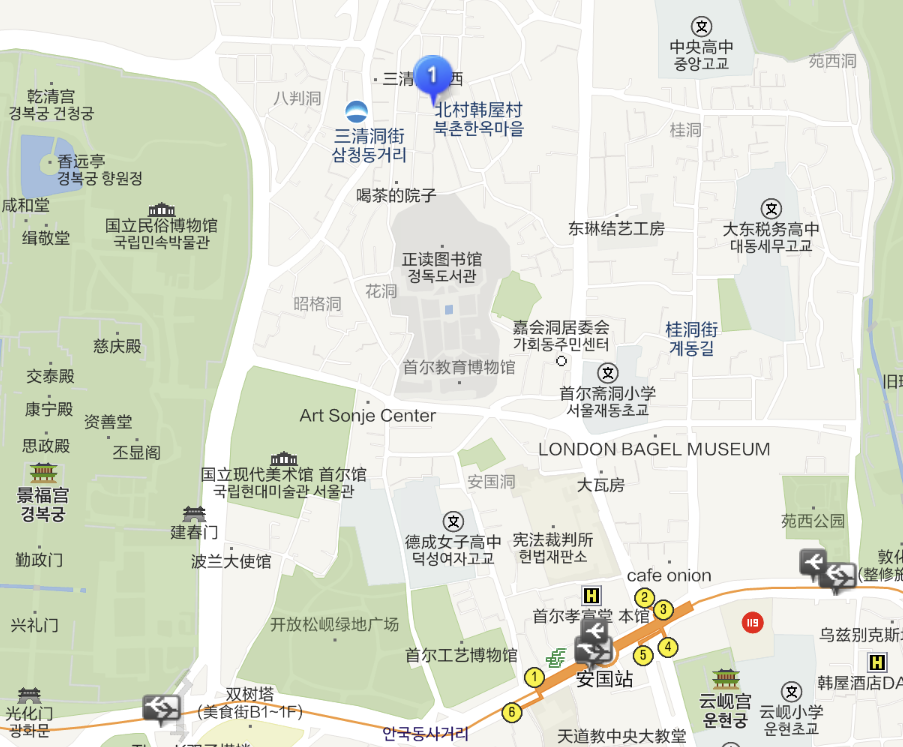 交通方式:地鐵3號線安國(안국)站1號出口步行約15分鐘